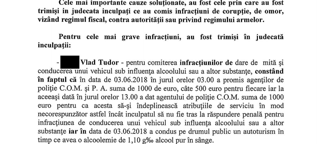 Potrivit unui comunicat al Parchetului de pe lângă Tribunalul Bistriţa-Năsăud, fapta şoferului datează din luna iunie a.c. când conducea un autoturism având 1,10 grame la mie alcool pur în sânge.