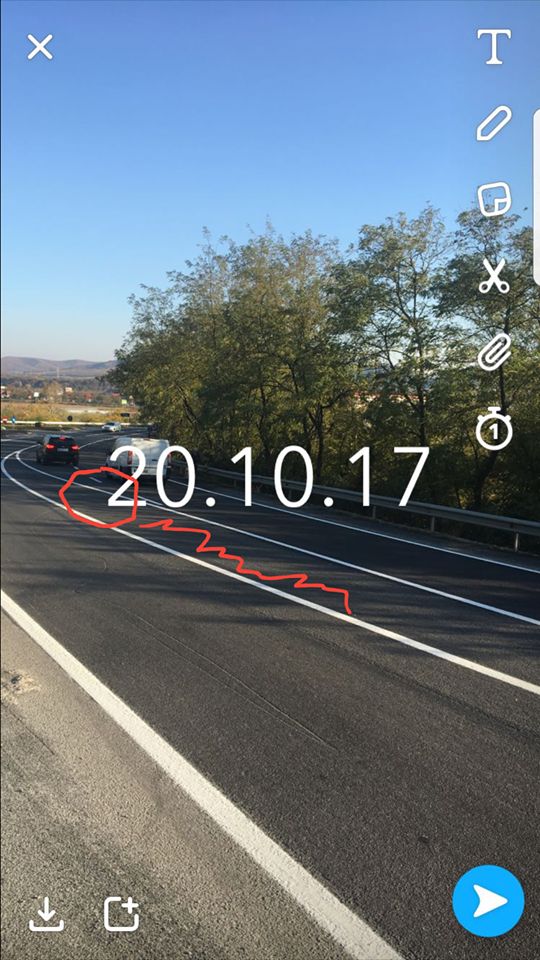 Daca aI văzut (și sunt convins că ai vazut ) poze de la locul accidentului …….poate ai vazut si acea poza cu masina Taxi urcata pe balustrada de la marginea drumului, cu mult in spate de unde ai desenat tu………..deci , ori tu MINȚEȘTI , ori ai mers cu omviteza extraordinara , de ai reusit ca de pe mijlocul drumului sa arunci pe balustrada de cca 0,6 metri inalta , cu cca 50 de metri mai in spate de , locul desenat de tine , sau avocatii tai………. si apoi la acea vreme , drumul NU ERA MARCAT ……am fost a doua zi dupa accident acolo ………..curioasa este data de pe fotografii ………
