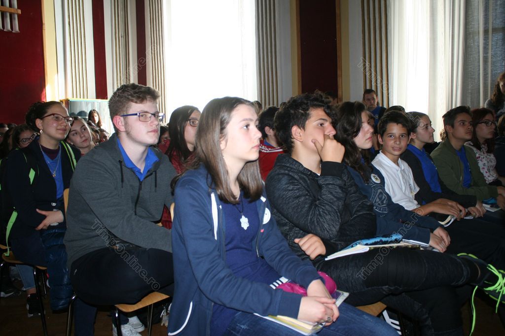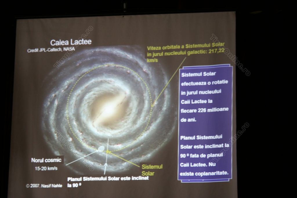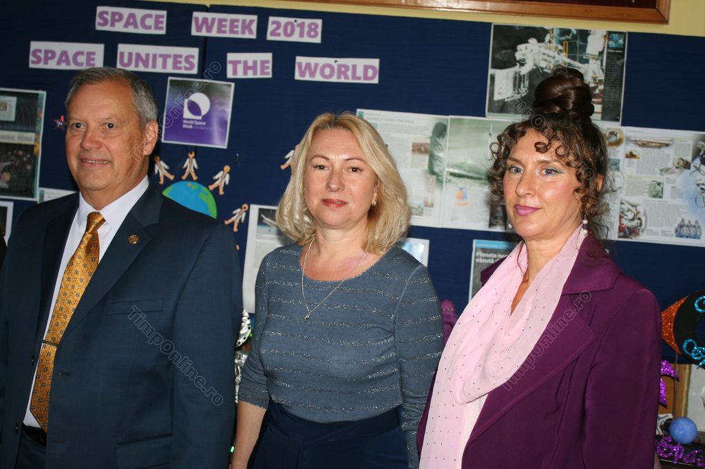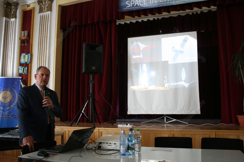 Invitatul le-a vorbit despre “Cosmosul, provocare şi oportunitate”, nu înainte de a admira expoziţia de machete de pe holul şcolii, realizată de elevi sub coordonarea profesoarelor de fizică Viorela Griga, directorul adjunct al şcolii pentru secţia germană, şi Carmen Ilea, şeful catedrei de Fizică, ambele implicate de mai mulţi ani în organizarea de evenimente cu ocazia Săptămânii Spaţiului.