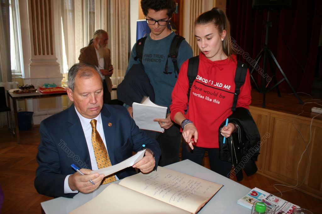 După ce şi-a încheiat expunerea, Dumitru Prunariu a dat autografe, s-a fotografiat cu toţi cei care au vrut o amintire cu el şi a semnat în Cartea de Onoare a CN “Liviu Rebreanu”.