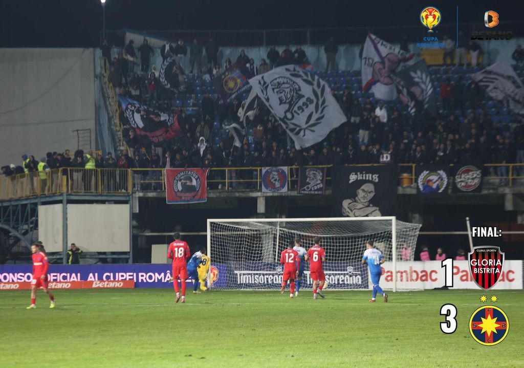 Atmosferă de mare meci la Bistrița! După aproape 12 ani și jumătate de la ultimul joc direct și tot atâta timp de la ultima partidă în nocturnă, Gloria și campioana FCSB s-au întâlnit miercuri 29 octombrie pe Stadionul ”Jean Pădureanu” în etapa 1 din Grupa B a Cupei României, în fața a peste 7.000 de spectatori.