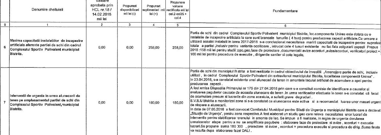 Potrivit proiectului de hotărâre, 763.000 de lei vor fi alocaţi (718.000 alocare inițială, 45.000 suplimentar la rectificare) pentru realizarea unei construcții pentru adăpostirea utilajele (ratrac, ATV, snowmobil, tunuri de zăpadă) și grupuri sanitare.