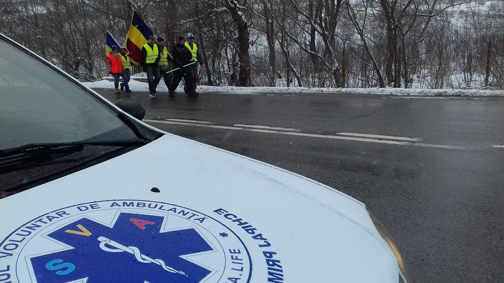 După ce au explicat gestul lor simbolic de a duce Steagul Unirii pe jos la Chişinău cu scopul de a contribui la conştientizarea poporului român asupra necesităţii unirii dintre România şi R. Moldova, aceştia au pornit pe jos spre vama Sculeni (25 km).