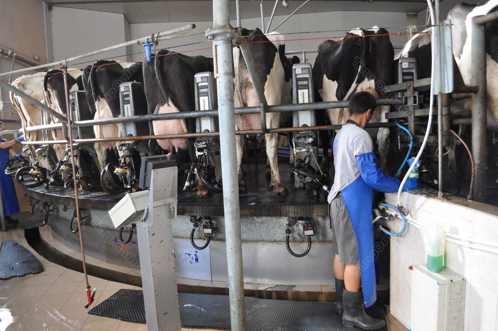 Am ajuns la Şieu Odorhei într-o dimineaţă în care începuse mulsoarea. În incinta respectivă, totul este mecanizat şi computerizat. Am văzut animale intrând în boze, cărora li se scanează numărul şi le este măsurată cantitatea de lapte după ce au fost mulse. Dacă aceasta corespunde standardelor, se aprinde un bec verde, dacă este prea mică, altul roşu. Animalul respectiv are o problemă şi nu va mai putea ieşi din ţarc împreună cu celelalte, ci va fi direcţionat spre o zonă în care medicii veterinari îl examinează şi văd de ce are nevoie. Nimeni nu intră în contact cu laptele, acesta fiind direcţionat direct din ugere într-un tanc, adus la temperatura potrivită şi trimis la Monor, la fabrică. În felul acesta e cât se poate de curat şi lipsit de germeni, ideal pentru a fi folosit ca materie primă pentru produse proaspete. De fapt, singurul.
