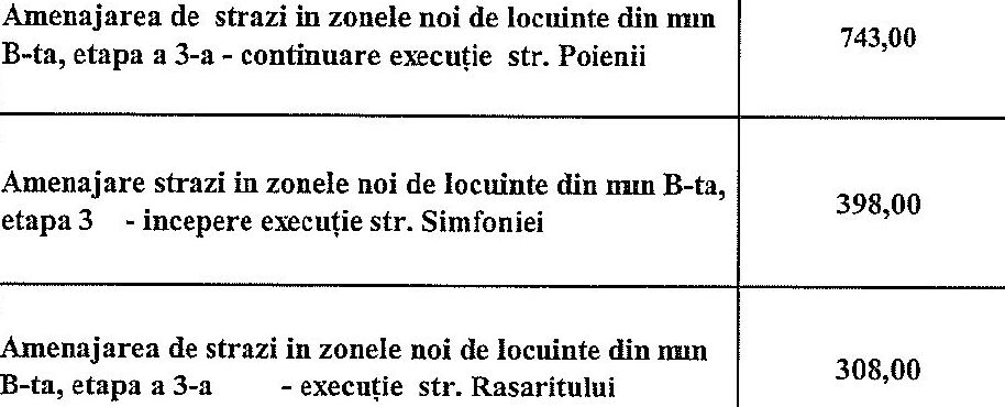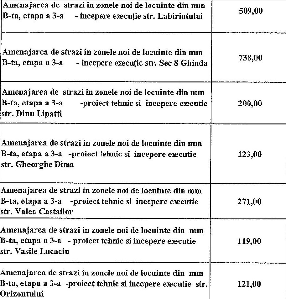 • Doamne cate minciuni ca sa se potoleasca lumea. Pai unele din strazile amintite le citesc in presa in fiecare an dar am constatat ca nu se asfalteaza mai mult de 3,4 strazi pa an. Va rog sa urmariti in presa pentru ca la anul vor aparea din nou. Mie scarba de atatea minciuni iar noi aruncam cu bani pe statui, akualand, akuapark si alte aberatii iar pe noi ne calca hotii ca nu avem minim necesar adica un iluminat public pe care il gasesti si in cele mai amarste sate din judet. RUSINE MINCINOSILOR.