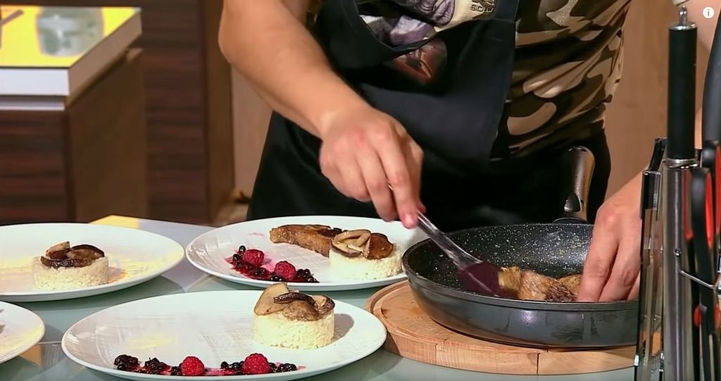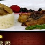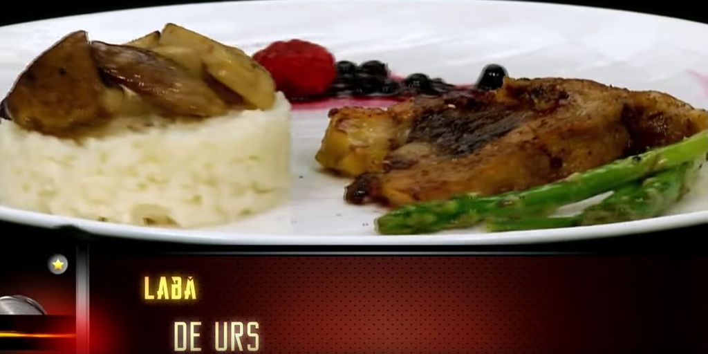 “Seamănă foarte mult cu un picior de om. Carnea trebuie fiartă vreo 6 ore. Am venit cu ea prefiartă. Am adus hribi culeşi din pădure, afine, zmeură. Cred că un preparat inedit. Pe când se vâna ursul în România în mod frecvent, era 100 de euro porţia de labă de urs. Mereu am încercat să am o poveste în farfurie. Nu ştiu să fac platinguri, nu ştiu. Este o poveste pe care eu cred că o înţeleg, alţii nu ştiu. E o labă cu care nu te întâlneşti toată ziua”, a spus concurentul.