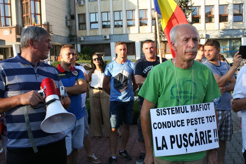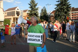 Preşedintele Partidului Verde Bistriţa, Marius Bălan, a venit şi el la protest cu o pancartă pe care scria: “Sistemul mafiot conduce peste tot! La puşcărie” şi “Plecaţi acasă, aroganţilor”.