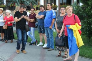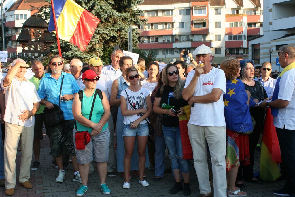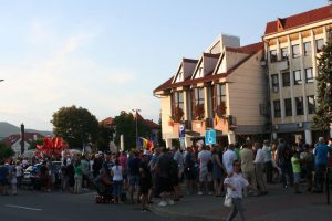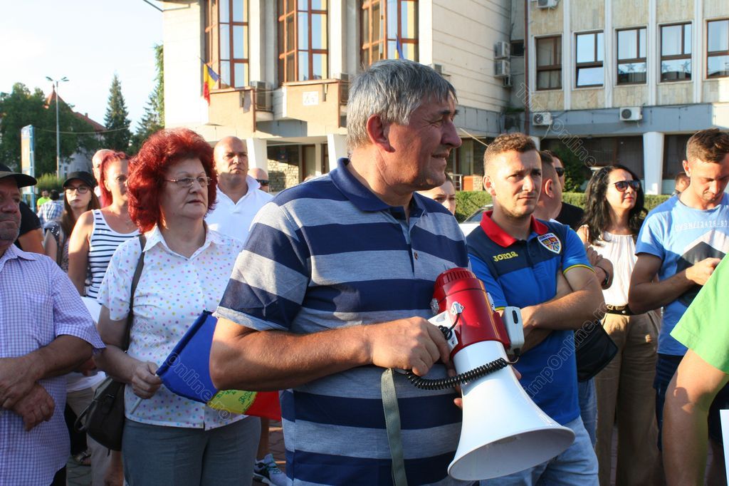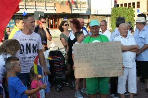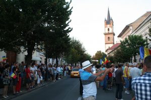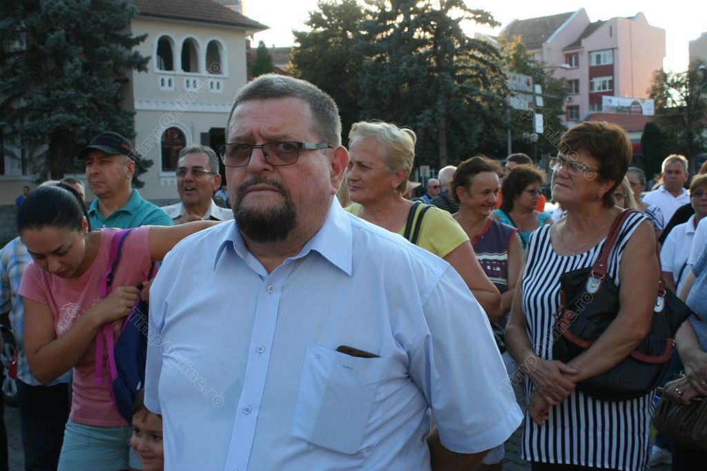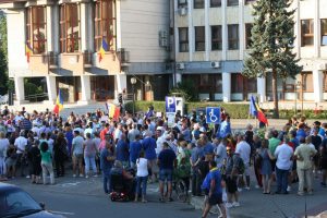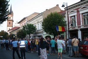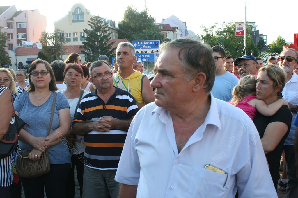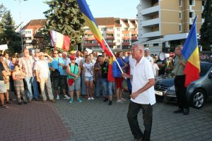 După ce au cântat Imnul României, preşedintele Asociaţiei Bistriţa Civică, Florin Chereji a ţinut un discurs enumerând motivele pentru care s-a ieşit din nou la proteste.