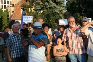 (FOTO-VIDEO) Bistriţenii s-au adunat vineri seara în număr mare să fie alături de românii din diaspora care participă la mitingul de la Bucureşti. Oamenii au afişat pancarte pe care au scris mesaje antiguvernamentale şi anti-PSD, cerând totodată organizarea de alegeri anticipate. Printre cei care au venit la protest s-a numărat şi dr. Corneliu Florea, plecat în Canada încă dinainte de Revoluţie.