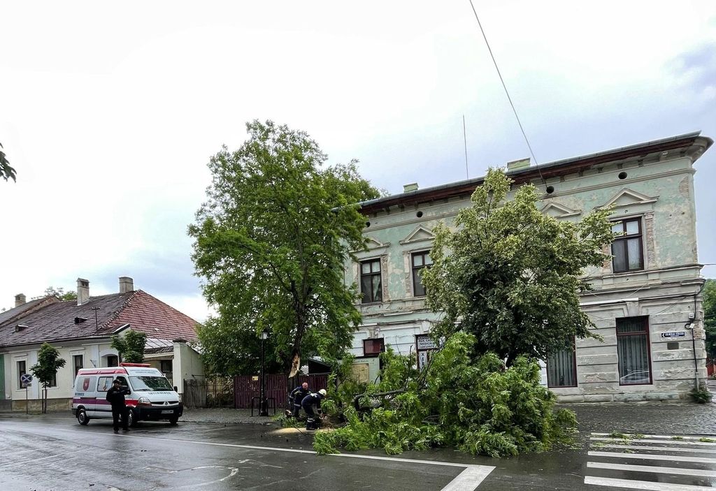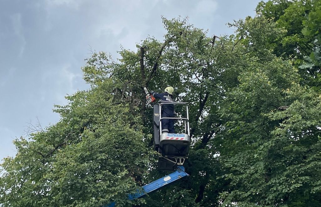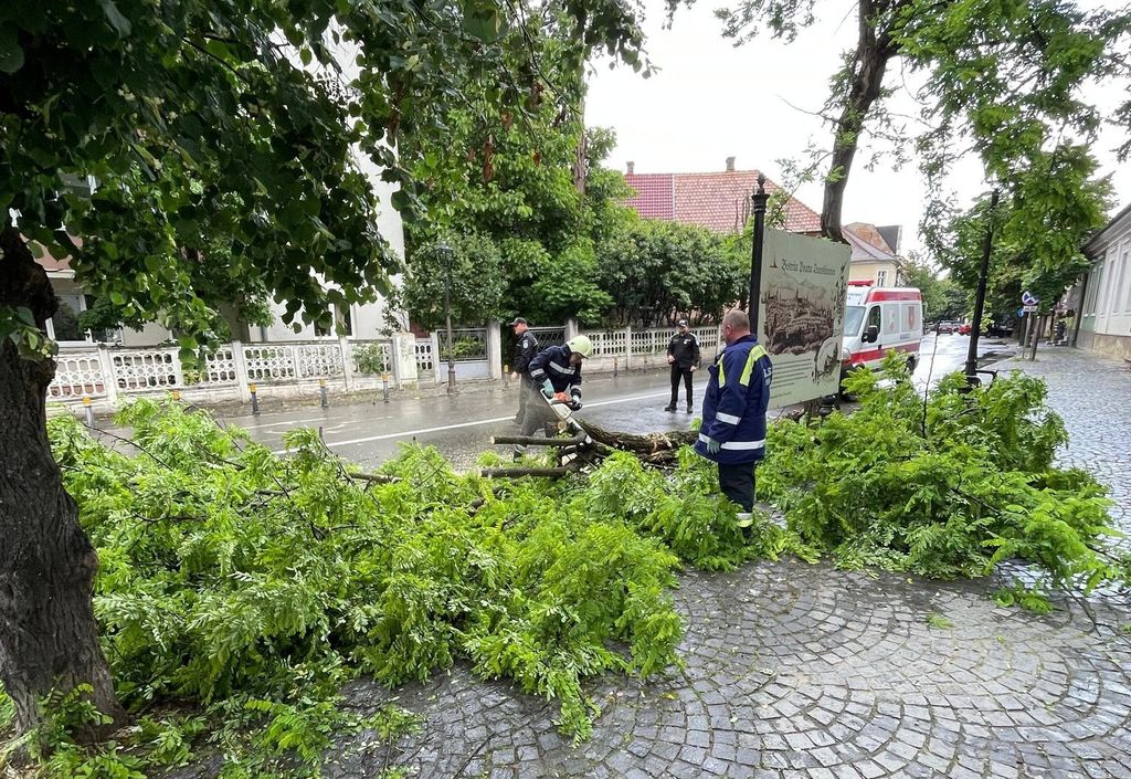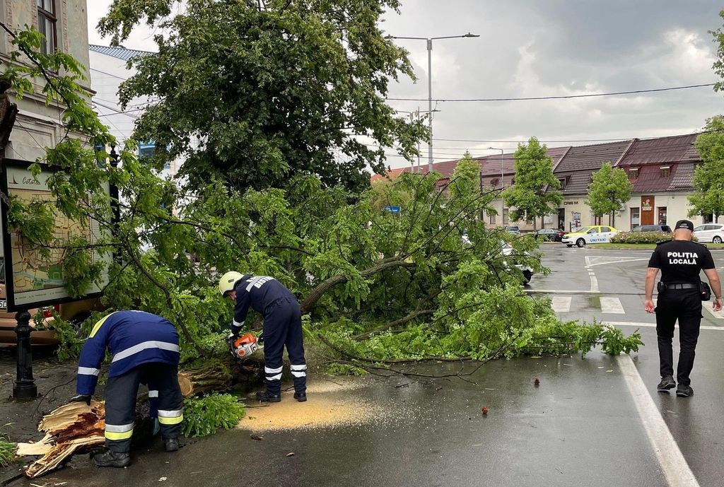 Datorită unui bistrițean atent și implicat, care a alertat autoritățile, o creangă aflată în pericol de cădere pe str. General Grigore Bălan a fost îndepărtată la timp de voluntarii SVSU Bistrița, care au intervenit preventiv cu nacela, mai ales că vântul începuse să sufle cu putere.