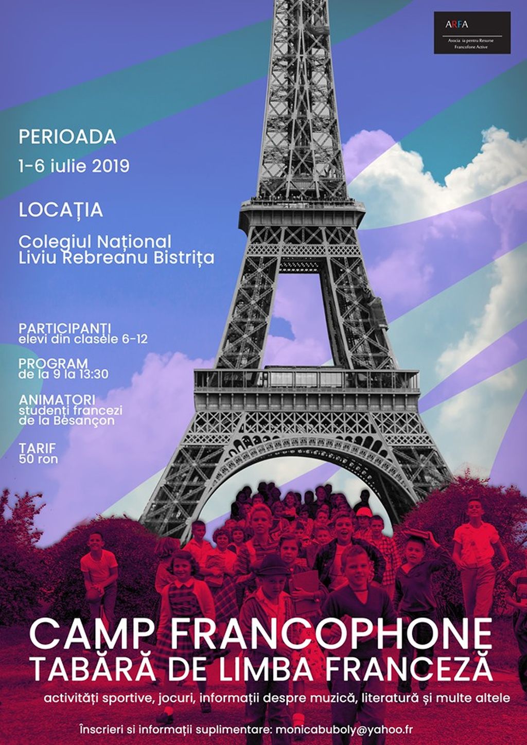 La Colegiul Național ”Liviu Rebreanu” din Bistrița are loc zilele acestea Tabăra Camp Francophone, organizată de Asociația de Resurse Francofone Active (ARFA) și de Asociația Franche-Sylvanie Besancon – care a asigurat prezența a trei animatoare din Franța – și la care participă elevi din tot județul.