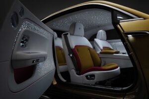Un Rolls-Royce Spectre, cu numere de Bistrița-Năsăud – primul model cu zero emisii al mărcii britanice – filmat pe o stradă din Cluj-Napoca parcat...