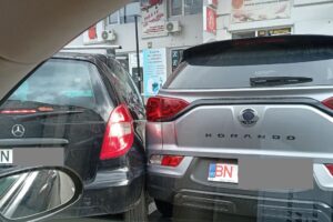 Un șofer care nu a reușit să parcheze în zona de pe Bulevardul Decebal unde au fost eliminate parcările în spic cu altele perpendiculare a avariat o mașină...
