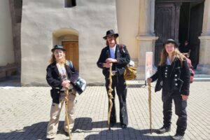 Îmbrăcați în “Kluft“, un costum tradițional alcătuit din pantaloni evazaţi, vestă şi haină de culori diferite, trei tineri cu vârste între 20 și 30 de ani din...