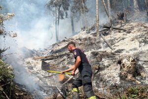 16 pompieri militari cu autospeciala de stins incendii de pădure, alături de voluntari ai Serviciului Voluntar pentru Situații de Urgență Bistrița Bârgăului și...