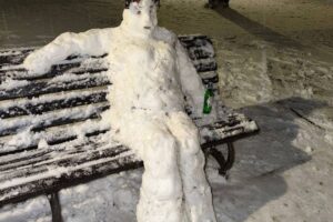 Zăpada abundentă care a căzut în ultima perioadă le-a stârnit unora imaginația. Așa a apărut un om de zăpadă care stă, relaxat, pe o bancă din parc. Imaginile...