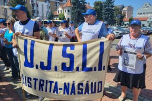 Cadre didactice din Bistrița-Năsăud, membre ale Federației Sindicatelor Libere din Învățământ (FSLI), au protestat astăzi în fața Ministerului Educației și...