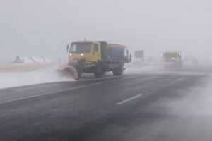 În ultima zi din anul 2025, se circulă în condiții de carosabil umed și ninsoare viscolită pe Drumul Național 17, în Pasul Tihuța. Echipele Secției de Drumuri...