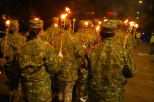 Evenimentele organizate la Bistrița cu ocazia Zilei Armatei României s-au încheiat cu o ceremonie tradițională: retragerea cu torțe a militarilor Brigăzii 81...