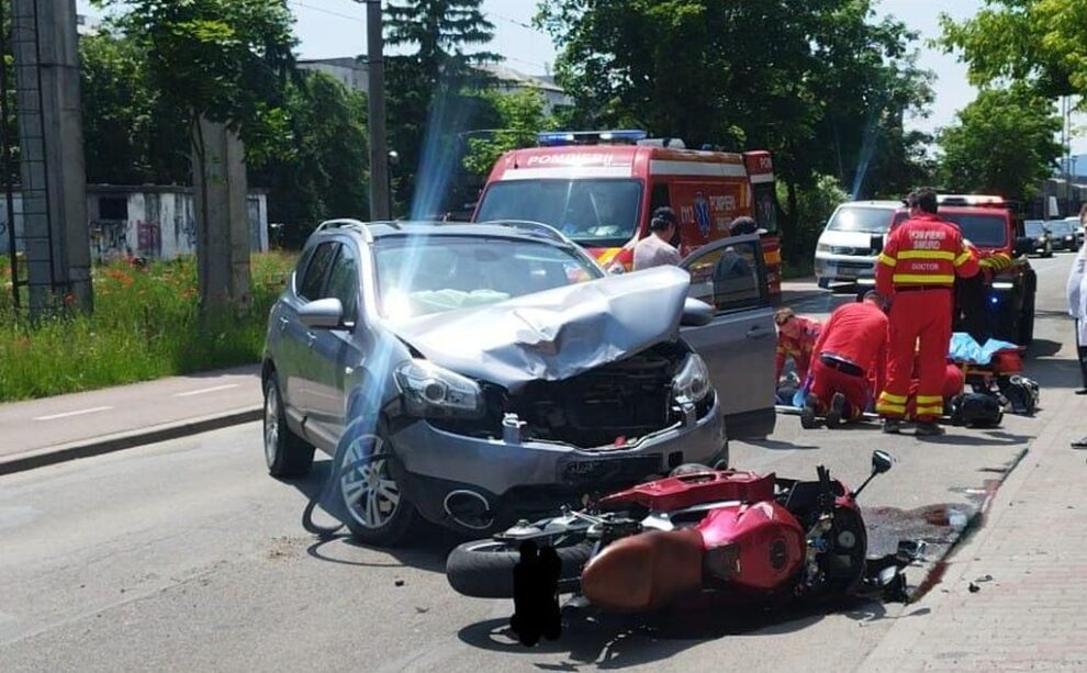 ”Polițiștii Biroului Rutier Bistrița au intervenit pentru efectuarea cercetărilor ca urmare a producerii unui accident rutier pe strada Eroilor din municipiul Bistrița. Din primele verificări efectuate la fața locului a rezultat faptul că un autoturism condus de o femeie de 40 de ani din Bistrița a intrat în coliziune cu o motocicletă care era condusă de un tânăr de 27 de ani din municipiu. Accidentul s-a soldat cu rănirea conducătorului motocicletei, care a fost transportat la spital pentru îngrijiri medicale. Ambii conducători au fost testați cu aparatul etilotest, rezultatele fiind negative. În cauză a fost întocmit dosar penal, iar polițiștii continuă cercetările pentru a stabili cauza și împrejurările exacte în care a avut loc evenimentul”, a menționat Inspectoratul de Poliție Județean Bistrița-Năsăud.