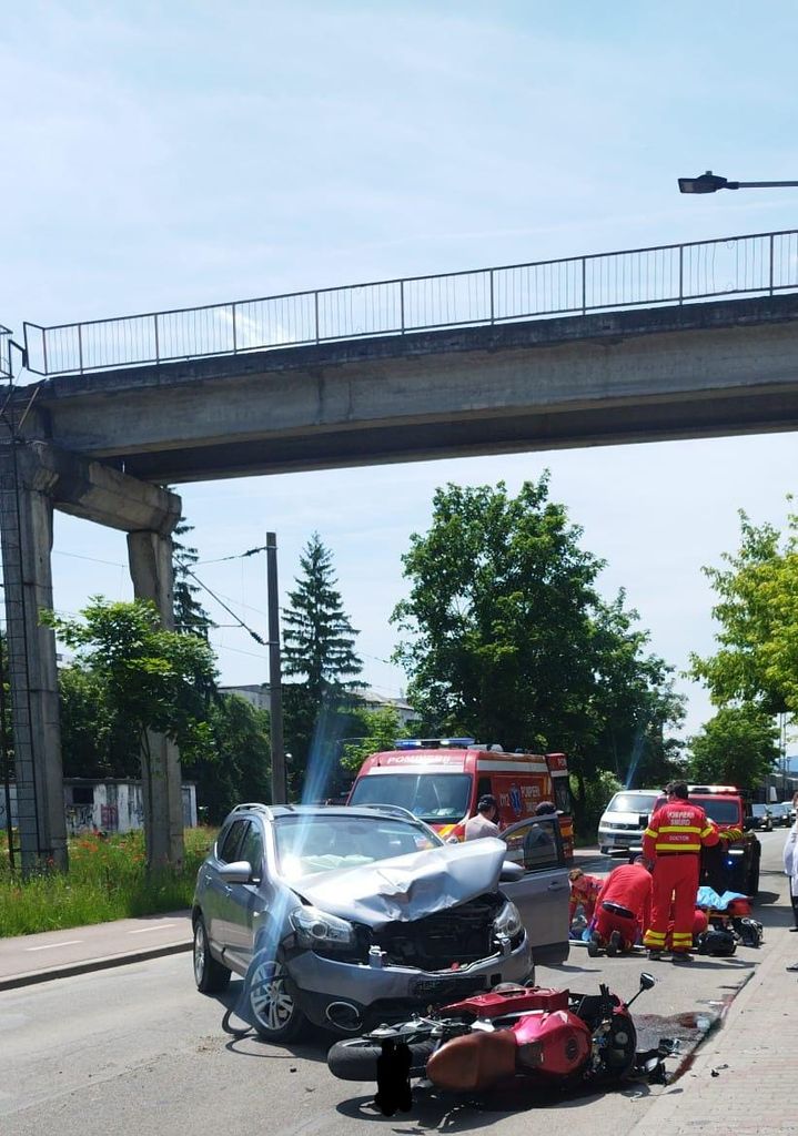 Echipajele de intervenție ale ISU Bistrița-Năsăud au fost alocate la un accident rutier produs pe strada Eroilor din Bistrița și în care au fost implicate un autoturism și o motocicletă.