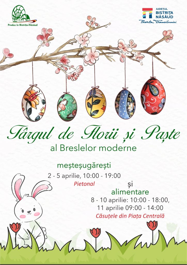 Sărbătorile de Florii și Paște aduc în centrul Bistriței tradiție, gust și culoare. La târgul breslelor moderne meșteșugărești și alimentare, tradiția, gustul și creativitatea se întâlnesc sub marca ”Produs în Bistrița-Năsăud”.
