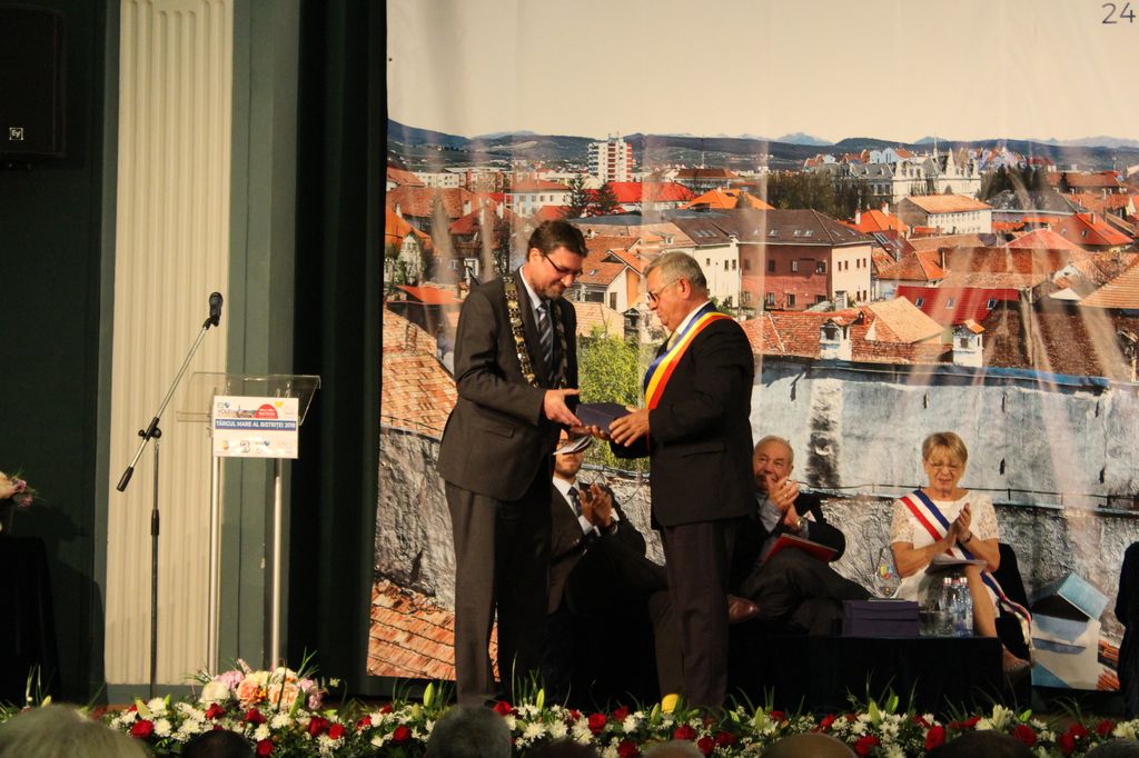 Reprezentanții orașelor înfrățite aflați la Bistrița în aceste zile au transmis salutul lor: Christoph von den Driesch – primar Herzogenrath, Ulrich Stücker – primar Wiehl, Danielle Dard – prim-viceprimar servicii sociale la Besançon, Ralph Schäfer – consilier local Wels, Moshe Basch – Rehovot. S-a adresat audienței și Hans Franchy, preşedintele Asociației Sașilor Bistrițeni din Germania.
