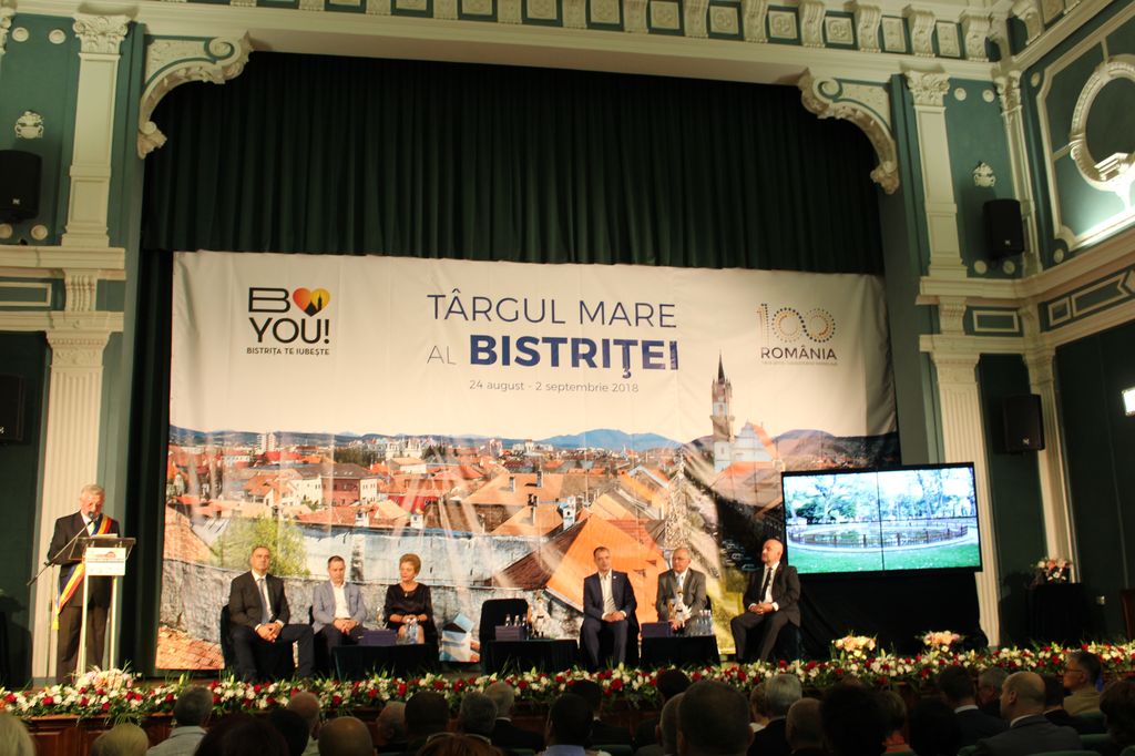 După intonarea imnurilor României și Europei, primarul Ovidiu Crețu a avut cuvântul de deschidere: ”Târgul Mare al Bistriței își deschide porțile la 665 de ani de la prima ediţie, cea din 1353, și la 100 de ani de la cel mai important eveniment din viaţa românilor – Marea Unire de la Alba Iulia din 1918. Vă doresc tuturor bun venit la sărbătoarea orașului nostru, sper să petreceți clipe frumoase în aceste zile, să vă bucurați de programele artistice, culturale, sportive și de divertisment pe care vi le oferim și să profitați din plin de evenimentele la care vă invităm să fiți parte. Bistrița sărbătorește România Centenară, este sloganul sub care desfășurăm acțiunile culturale, sportive, sociale și de agrement din cadrul Târgului Mare, pentru că dorim să subliniem importanța capitală a Marii Uniri din 1918 pentru țara noastră și totodată aportul și adeziunea locuitorilor Bistriței la evenimentele care au făcut posibilă, în 1918, unirea tuturor teritoriilor locuite de români într-o singură ţară: România Mare”.