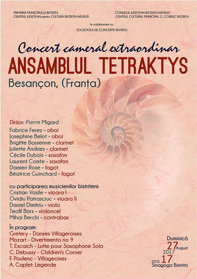 ora 17.00 – Concert cameral Tetraktys (Besançon), prof. coordonator Pierre Migard