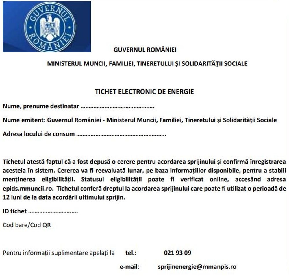 Tichetul poate fi utilizat exclusiv pentru plata facturilor de energie electrică emise începând cu data de 1 iulie 2025 și până la 31 martie 2026.