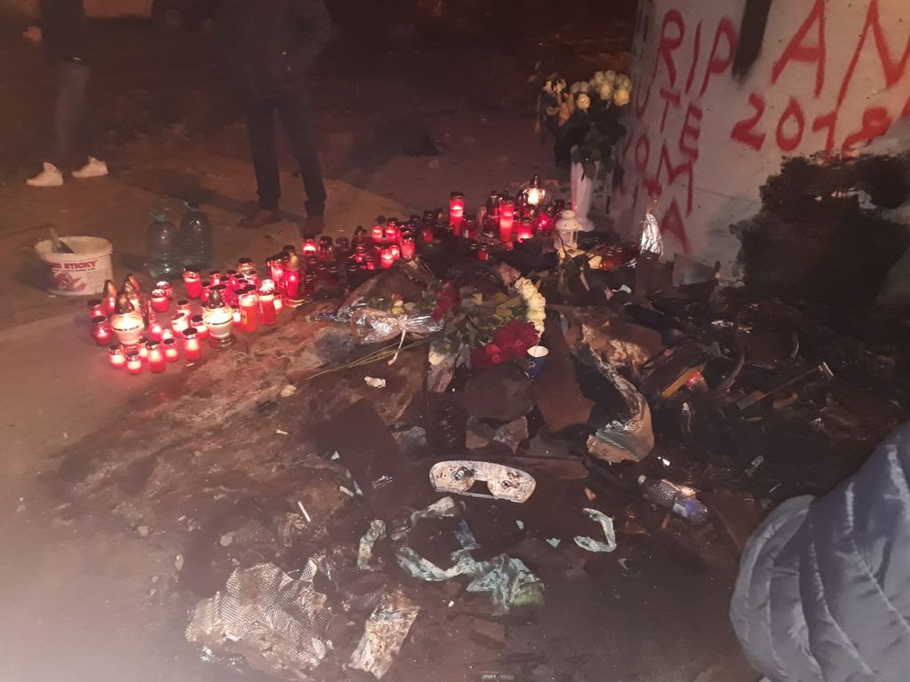 Foarte mulţi tineri, unii veniţi din alte judeţe, întristaţi de moartea prietenului lor, au venit cu flori şi au înconjurat stâlpul de susţinere a pasarelei de care acesta s-a izbit aflându-se la volanul maşinii sale marca BMW.