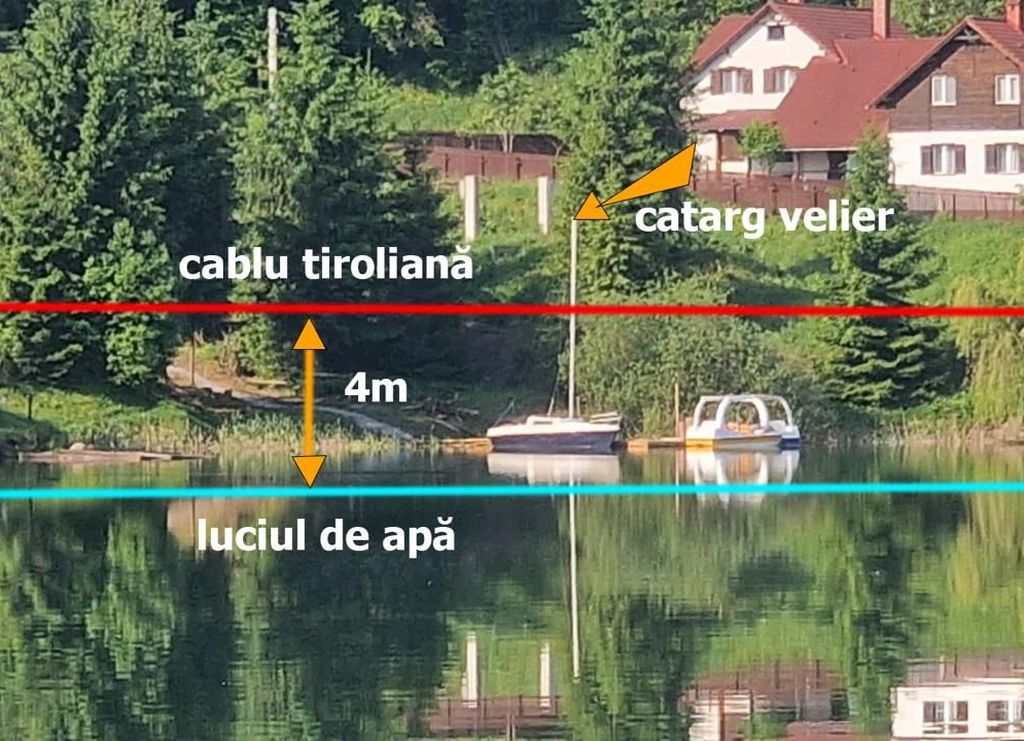 ”Suntem pe traseul tirolienei amplasate deasupra lacului Colibița, cu un velier de dimensiuni medii, cu un catarg foarte mic. După cum vedeți, ața coboară sub jumătatea catargului, nu știu dacă are 4 metri aici, fără încărcătură umană, fără greutatea presupusă a unui corp uman. Căderea acestei instalații de transport nu știm care e. Doi metri să spunem, trei… Teoretic nu o să poată trece nici o hidrobicicletă. Mai mult, la peste 100 de kg (ale persoanei care ar utiliza tiroliana – n.r.), bănuiesc că aventurierul va ajunge cu picioarele prin apă. Vă spun în mod personal: Colibița, trezește-te!”, a spus Răzvan Cerceja într-o postare video făcută pe pagina lui de Facebook.
