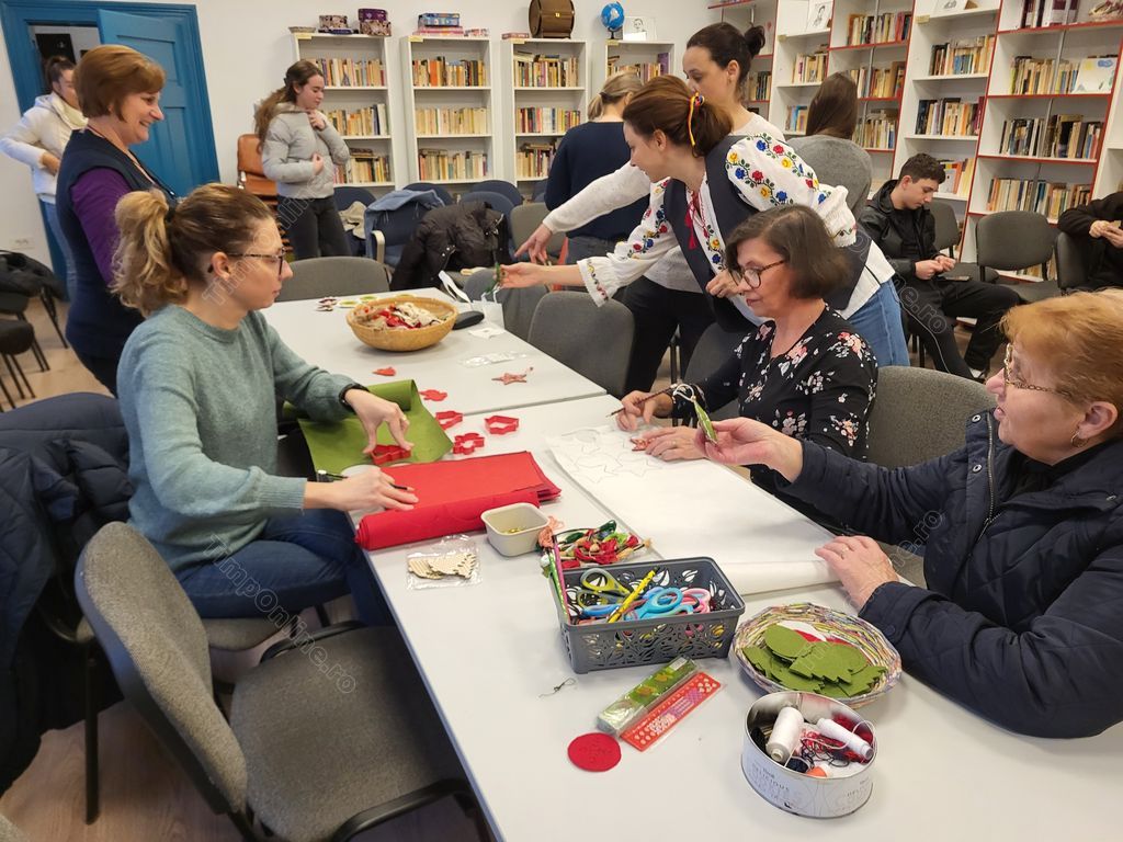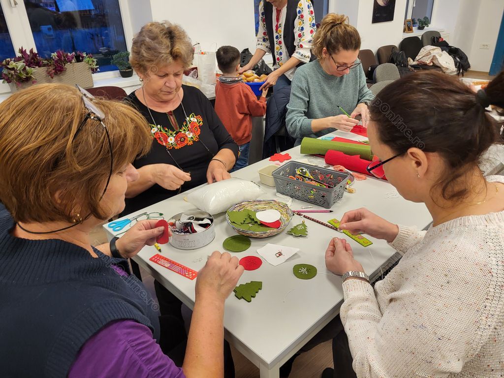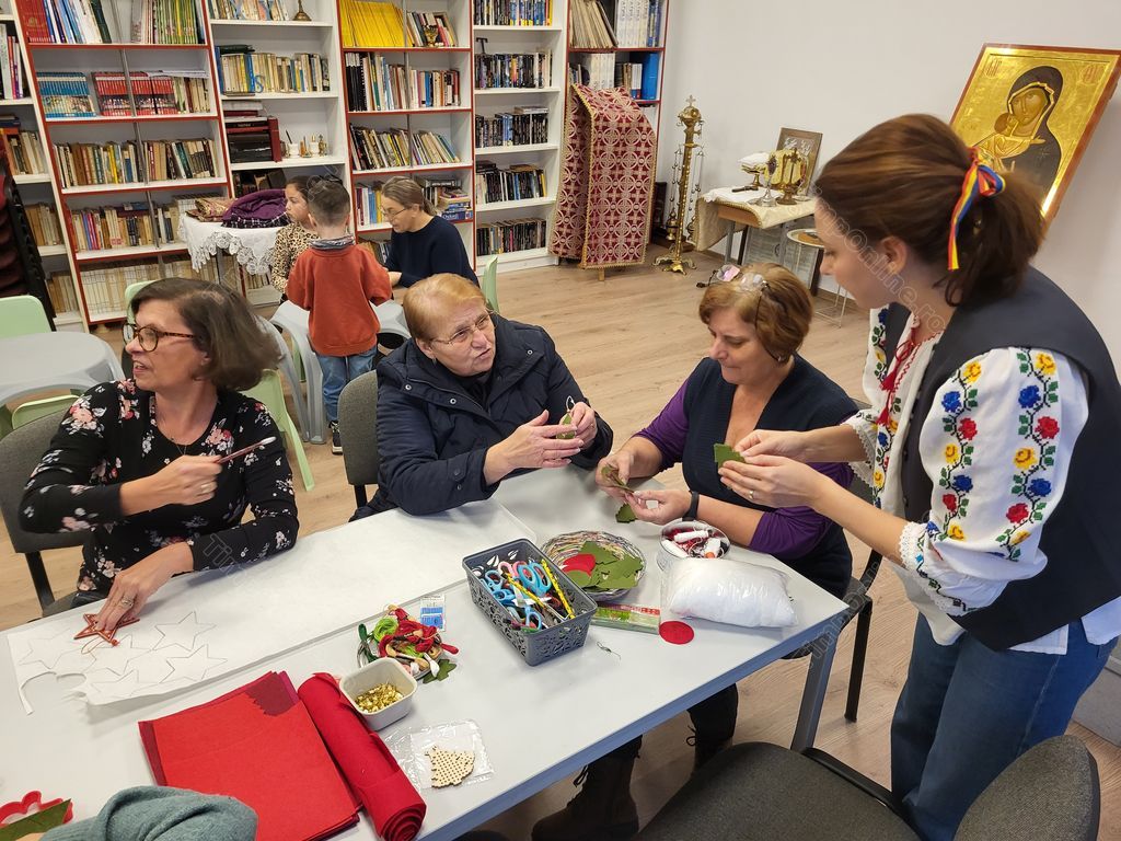 În timp ce trecea pe la mesele unde ieșeau minuni din mâinile femeilor, părintele nu îi scăpa din ochi pe adolescenți cu care lucrează intens în această perioadă să pregătească o piesă de teatru care va fi prezentată, la Târgul de Crăciun din 21 decembrie, ora 15.00, unde vor fi vândute toate ornamentele la care se lucrează la șezătorile de la Arcalia.