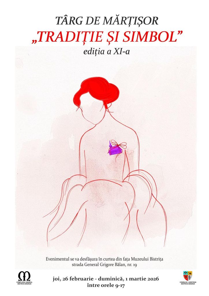 În curtea din fața Muzeului Bistrița va avea loc, de joi 26 februarie și până duminică 1 martie, între orele 09.00 – 17.00, a XI-a ediție a Târgului de Mărțișor ”Tradiție și Simbol”.