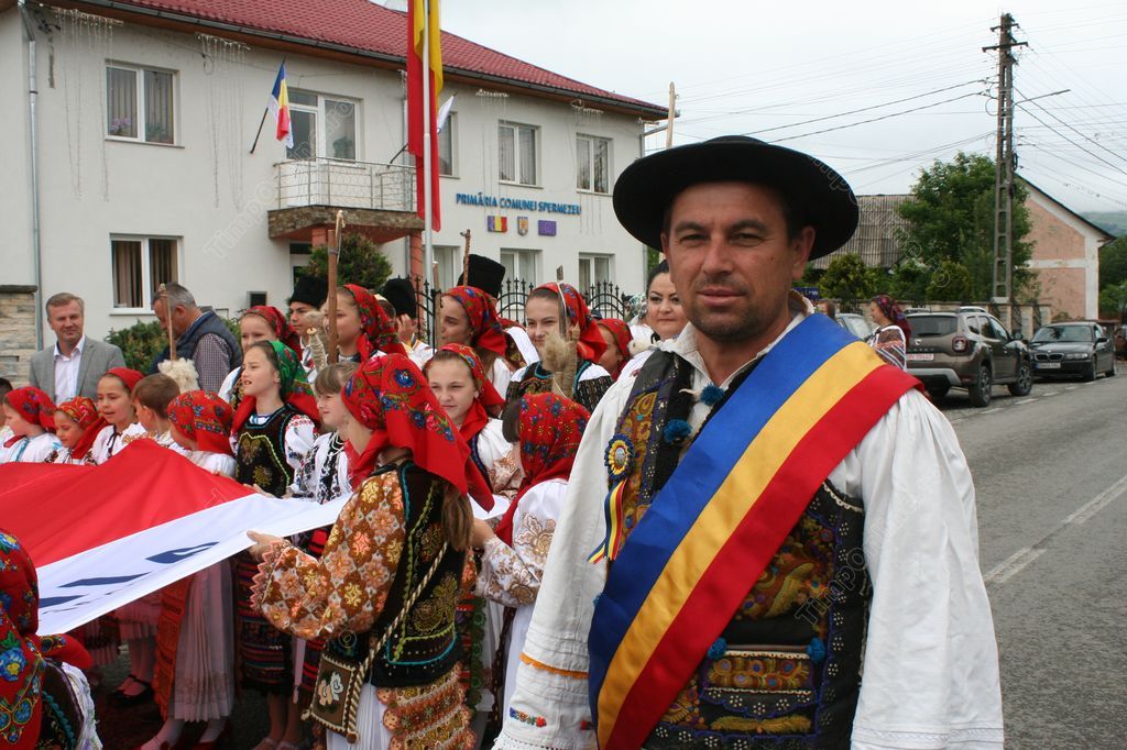 La iniţiativa primarului Sorin Hognogi, un grup de elevi de la Şcoala Gimnazială Spermezeu, în frunte cu directoarea Voichiţa Ţermure, toţi îmbrăcaţi în costume populare, au purtat de la Primărie şi până în piaţă un drapel imens pe care scria “România 1918-2018. Sărbătorim împreună”, spre bucuria oamenilor care i-au aplaudat şi le-au făcut multe fotografii.