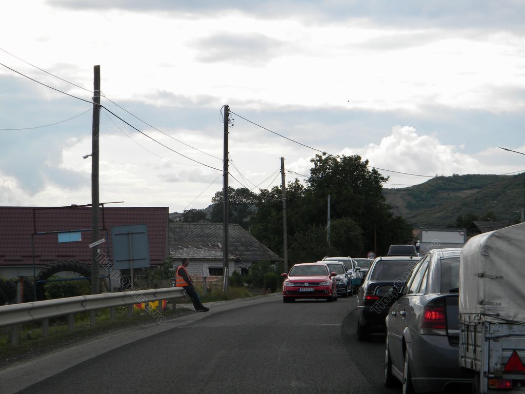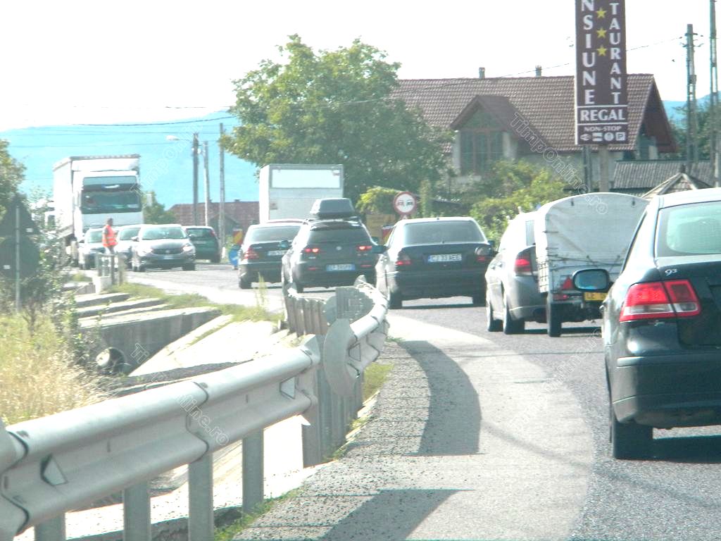 Pe celelalte porțiuni unde nu se lucrează la reîmprospătarea stratului asfaltic se circulă, de asemenea, greu, deoarece depășirile sunt imposibile.