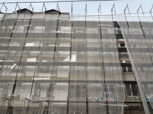 ACTUALIZARE La unele blocuri, cum este şi cel de pe strada Rodnei, constructorul a găsit soluţii ca să protejeze strada şi trecătorii, plase de acest tip fiind utilizate în mod frecvent în ţări din UE.