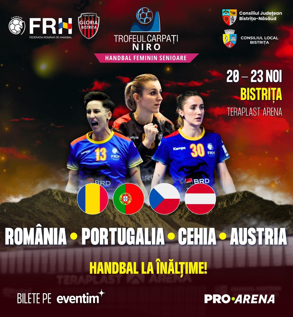 Trofeul Carpați la handbal feminin revine la TeraPlast Arena din Bistrița în perioada 20-23 noiembrie, cu participarea echipelor naționale ale României, Austriei, Cehiei și Portugaliei.