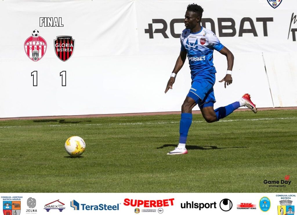 După victoria cu Chindia din etapa precedentă, Gloria Bistrița a obținut un nou rezultat pozitiv, egal în deplasare cu Sepsi Sfântu Gheorghe în runda a 11-a din Liga 2 la fotbal, scor final 1-1 (0-1). Gloria a urcat pe locul 15.