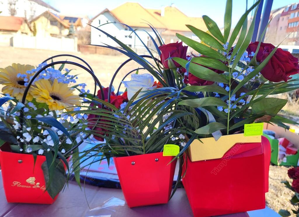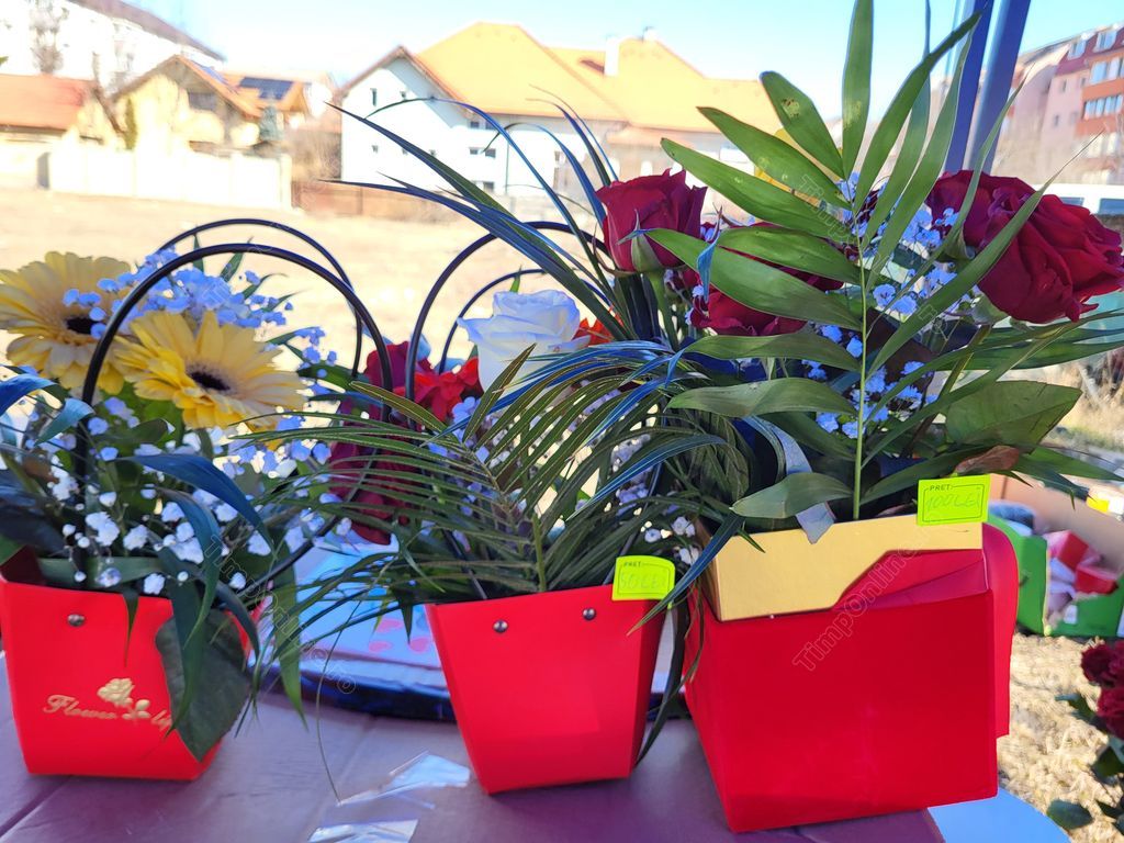Trandafirii la ghiveci costă 25 de lei, aranjamentele florale costă 50 de lei, iar Anthurium – 60 de lei.