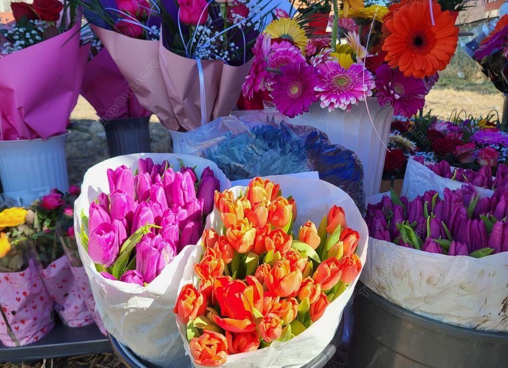 În parcarea magazinului Lidl de pe strada Andrei Mureșanu se vând, începând de astăzi, și până în 8 Martie, flori foarte frumoase și ieftine, probabil printre cele mai ieftine din oraș.