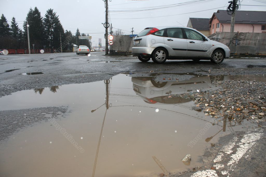 • O groapa monstruoasa este si la iesirea de pe langa pasarela noua,in apropiere de firma Toyota.Cand e plina cu apa nu poti vedea adancimea,nici n-ai cum s-o ocolesti.Efectiv risti sa rupi masina acolo.Aloooo Cretu!!!