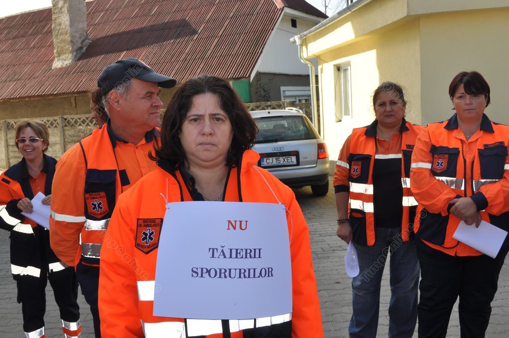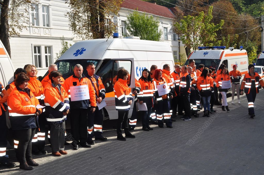 E cu adevărat urgenţă la Ambulanţă! Peste o sută de oameni care salvează vieţi au venit de acasă, din puţinul lor timp liber, să protesteze în curtea instituţiei de teamă că, de anul viitor, vor lucra mai mult şi degeaba şi îşi vor pune tot mai mult propriile vieţi în pericol din cauza maşinilor cu care sunt obligaţi să se se deplaseze prin judeţ, vechi de 10-12 ani şi unele cu circa un milion de kilometri la bord.