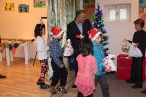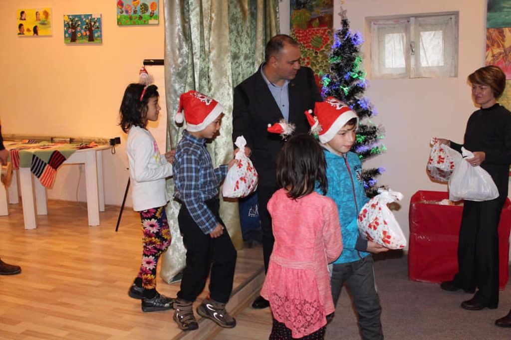 (FOTO) Moş Nicolae la venit la timp pentru copiii care învaţă în şcolile speciale din oraş, dar nu numai. Mesagerul moşului a fost tocmai viceprimarul Cristian Niculae care le-a împărţit daruri.