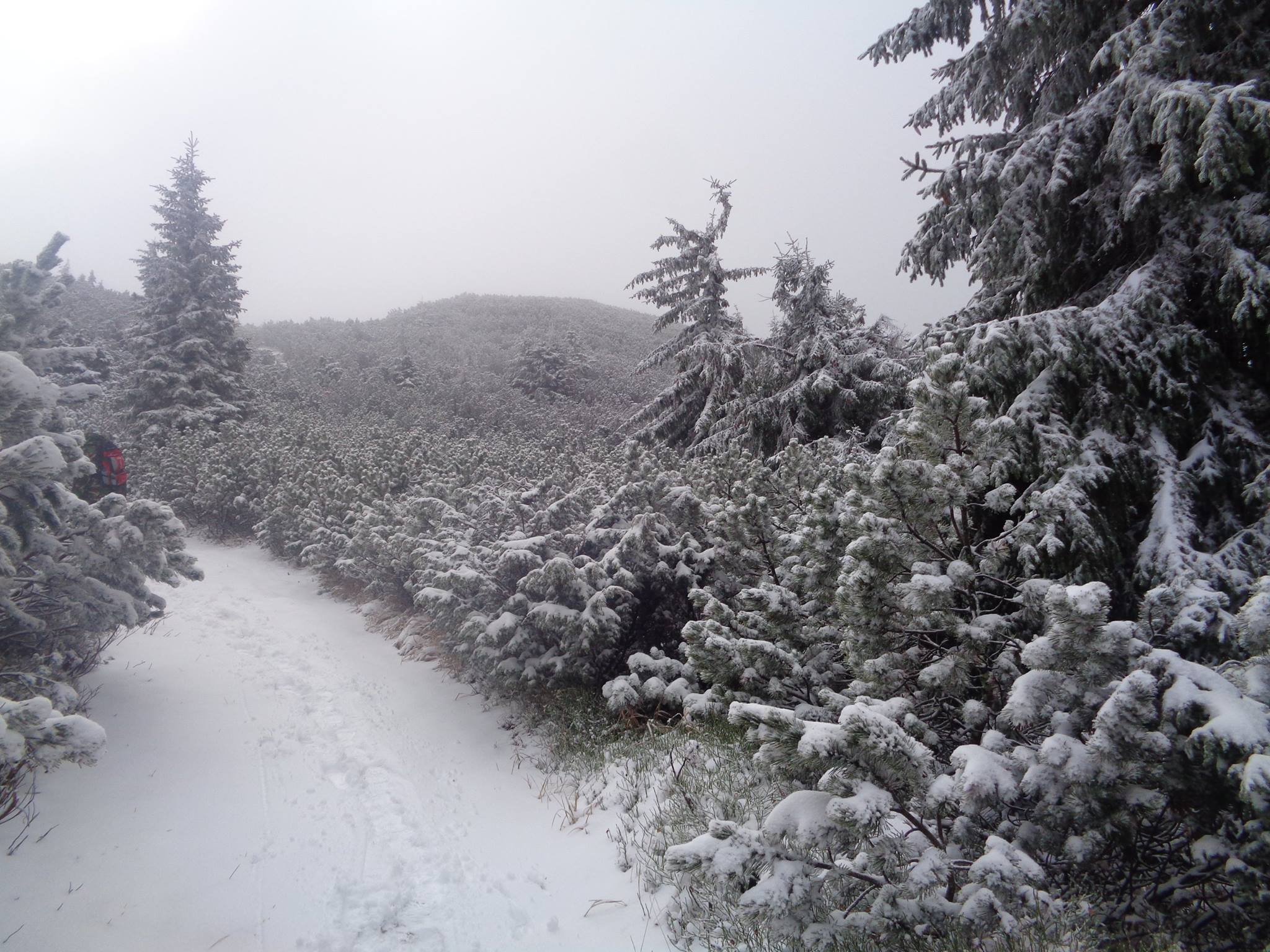 Munţii Călimani sunt albi deja, potrivit unor fotografii postate pe Facebook de amatorii de drumeţii.