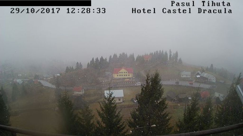 Duminică la prânz a început să ningă în Pasul Tihuţa. Camera web amplasată pe Hotelul Dracula a surprins primii fulgi de nea din acest sezon care cad peste muntele acoperit de ceaţă. De altfel, chiar duminică au intrat în vigoare un cod portocaliu și unul galben de vânt puternic, lapoviță, ninsoare și disconfort termic, valabile inclusiv pentru județul Bistrița-Năsăud.