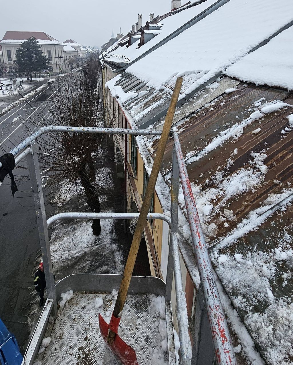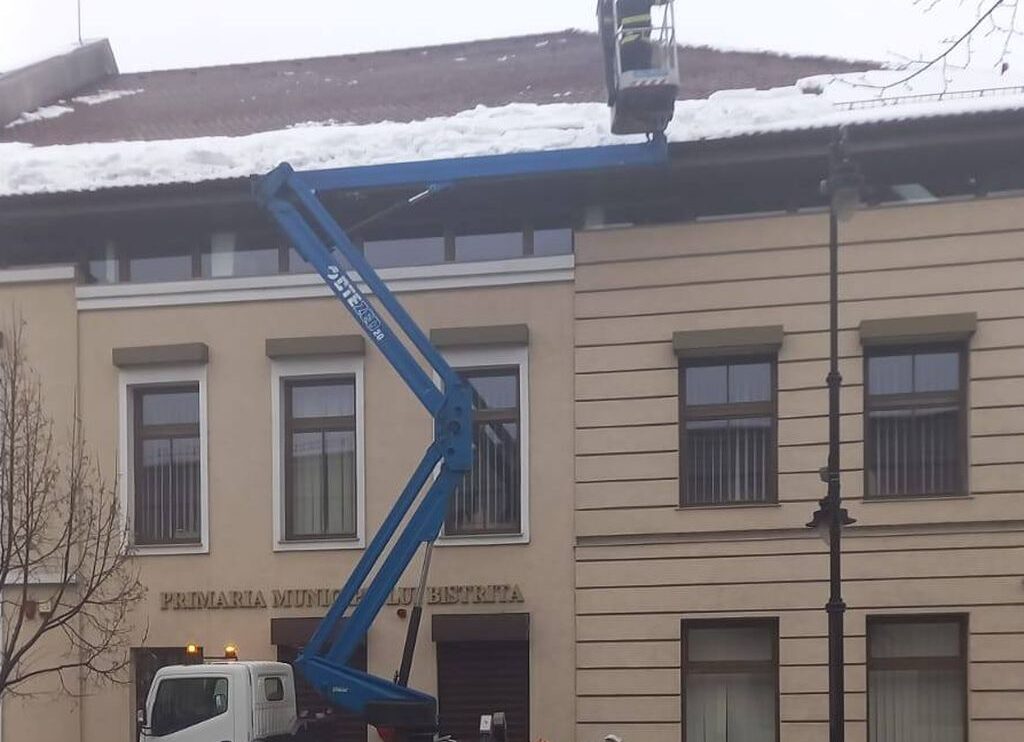Angajații Serviciului Voluntar pentru Situații de Urgență Bistrița au început să curețe zăpada de pe acoperișuri, îndeosebi acolo unde există riscul să alunece și să cadă pe trotuare, informează primarul Gabriel Lazany.