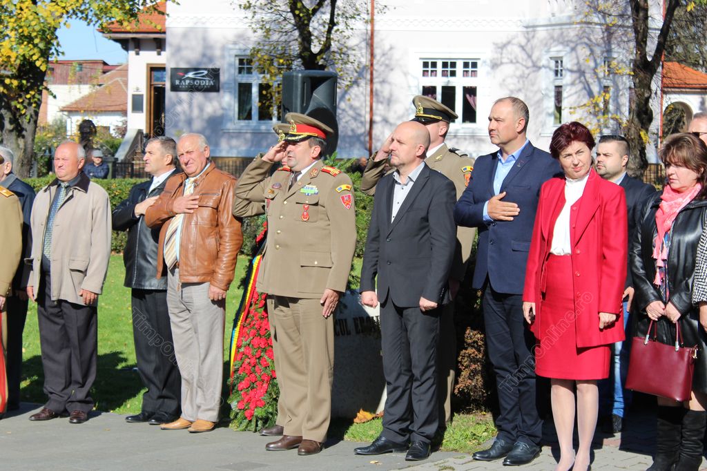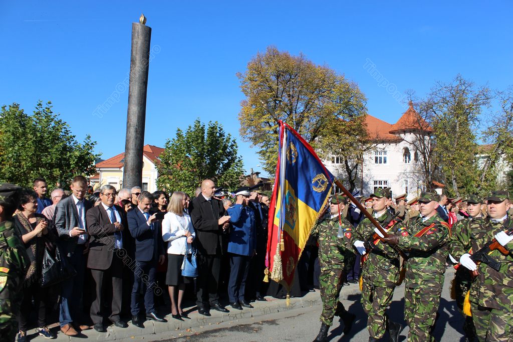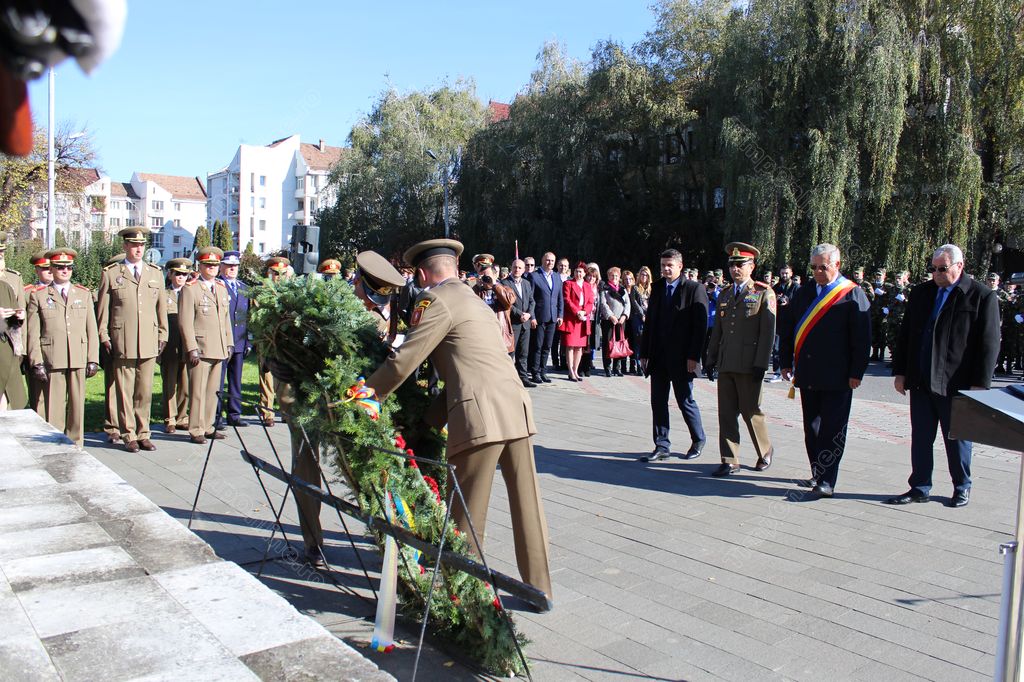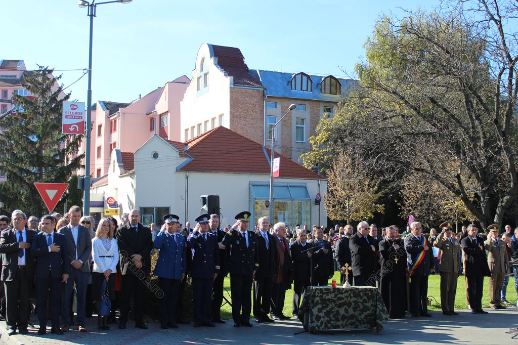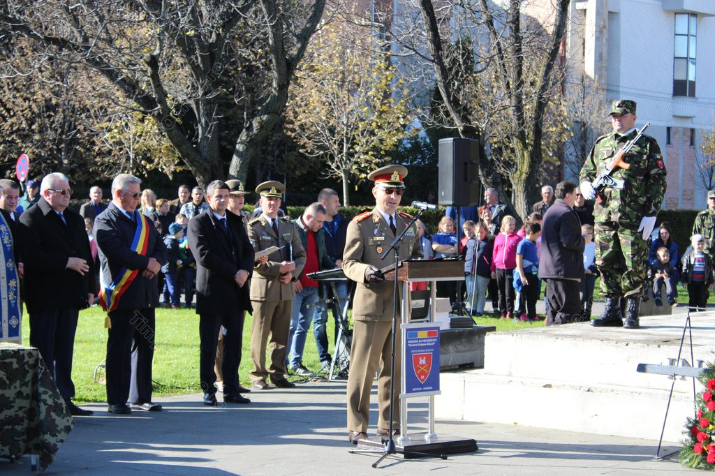 ”Este o zi simbol atât pentru oștirea țării, cât și pentru întreaga națiune. Este ziua eliberării ultimei brazde de pământ românesc de sub ocupație străină, este ziua în care ne cinstim eroii care prin jertfa lor ne-au dat posibilitatea să trăim pe aceste meleaguri. Este ziua în care ne arătăm respectul față de soldații români care au luptat pentru ca noi să trăim astăzi liberi și independenți. Este o zi care ține loc și de cruci la mormintele sau gropile comune risipite de-a lungul și de-a latul Europei, acolo unde soldatul român, cetățeanul în uniformă, a căzut făcându-și datoria. Este sărbătoarea fiecărei inimi de român, este momentul simplu și demn al continuității spiritului de învingător al acestui neam, este o poruncă din străbuni care ne îndeamnă și ne obligă să fim demni păstrători și continuatori ai tradițiilor și valorilor nației române. Este, fără îndoială, ziua noastră, a celor îmbrăcați în uniformă, dar și a dvs., a celor care la nevoie știm siguri că veți fi alături de noi. Existența continuă a Armatei pe aceste meleaguri și în particular a Brigăzii 81 Mecanizată dovedește că bistrițenii prețuiesc haina militară, îi înțeleg menirea și necesitatea. Ați fost alături de noi în tot ceea ce întreprindem, aici în țară dar și în misiunile internaționale din Angola, Balcanii de Vest, Irak sau Afganistan. Ne gândim atât la eroii noștri, cât și la cei care își îndeplinesc departe de țară complexele misiuni. Mă înclin cu recunoștință în fața celor căzuți pe câmpurile de onoare și aduc un sincer omagiu tuturor veteranilor de război, pentru care datoria față de țară a reprezentat crezul suprem în viață”, a spus comandantul Brigăzii 81 Mecanizată ”General Grigore Bălan”, col. Mircea Gologan.