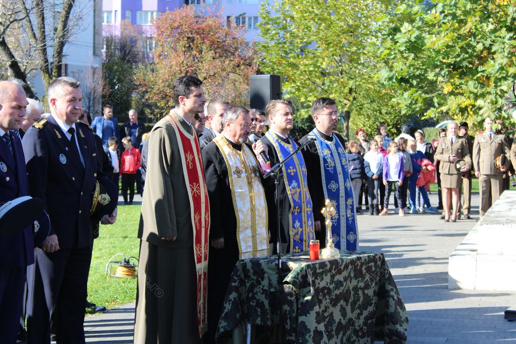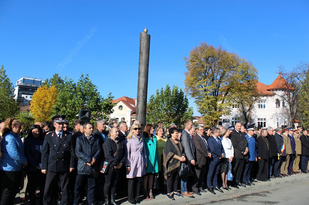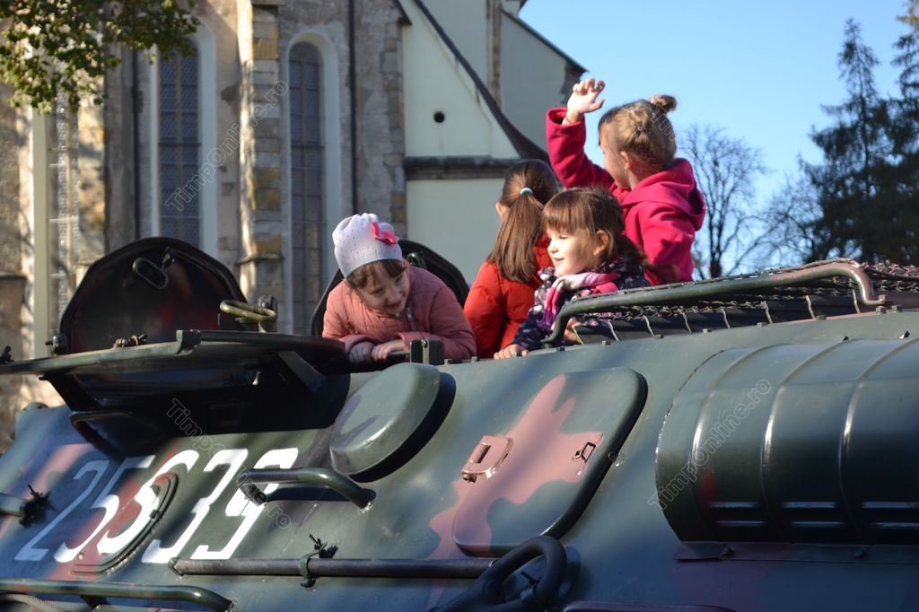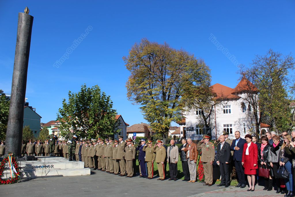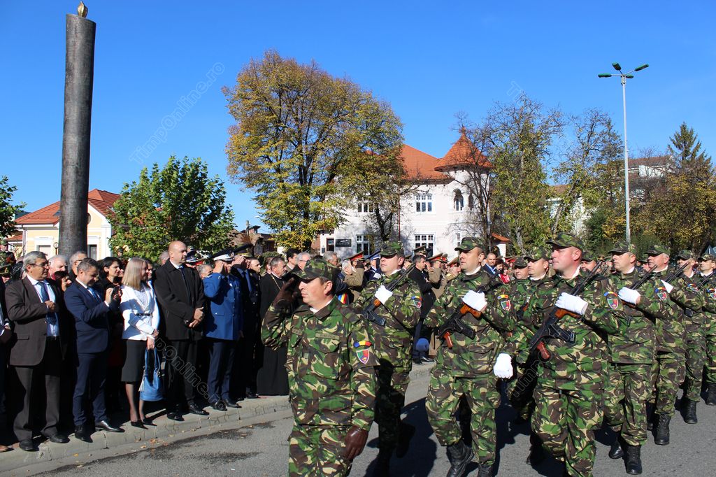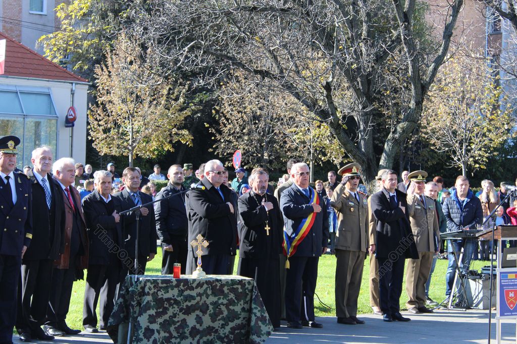 ”Este o zi simbol atât pentru oștirea țării, cât și pentru întreaga națiune. Este ziua eliberării ultimei brazde de pământ românesc de sub ocupație străină, este ziua în care ne cinstim eroii care prin jertfa lor ne-au dat posibilitatea să trăim pe aceste meleaguri. Este ziua în care ne arătăm respectul față de soldații români care au luptat pentru ca noi să trăim astăzi liberi și independenți. Este o zi care ține loc și de cruci la mormintele sau gropile comune risipite de-a lungul și de-a latul Europei, acolo unde soldatul român, cetățeanul în uniformă, a căzut făcându-și datoria. Este sărbătoarea fiecărei inimi de român, este momentul simplu și demn al continuității spiritului de învingător al acestui neam, este o poruncă din străbuni care ne îndeamnă și ne obligă să fim demni păstrători și continuatori ai tradițiilor și valorilor nației române. Este, fără îndoială, ziua noastră, a celor îmbrăcați în uniformă, dar și a dvs., a celor care la nevoie știm siguri că veți fi alături de noi. Existența continuă a Armatei pe aceste meleaguri și în particular a Brigăzii 81 Mecanizată dovedește că bistrițenii prețuiesc haina militară, îi înțeleg menirea și necesitatea. Ați fost alături de noi în tot ceea ce întreprindem, aici în țară dar și în misiunile internaționale din Angola, Balcanii de Vest, Irak sau Afganistan. Ne gândim atât la eroii noștri, cât și la cei care își îndeplinesc departe de țară complexele misiuni. Mă înclin cu recunoștință în fața celor căzuți pe câmpurile de onoare și aduc un sincer omagiu tuturor veteranilor de război, pentru care datoria față de țară a reprezentat crezul suprem în viață”, a spus comandantul Brigăzii 81 Mecanizată ”General Grigore Bălan”, col. Mircea Gologan.
