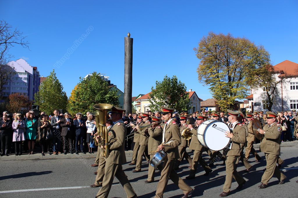 Ceremonia publică a cuprins acordarea onorului militar, salutul drapelului de luptă, intonarea Imnului Naţional al României, oficierea serviciului religios de către un sobor de preoți în frunte cu protopopul Bistriței Alexandru Vidican, depunerea unei coroane de flori şi defilarea gărzii de onoare în acordurile Formaţiunii Muzicii Militare a Garnizoanei Bistriţa.